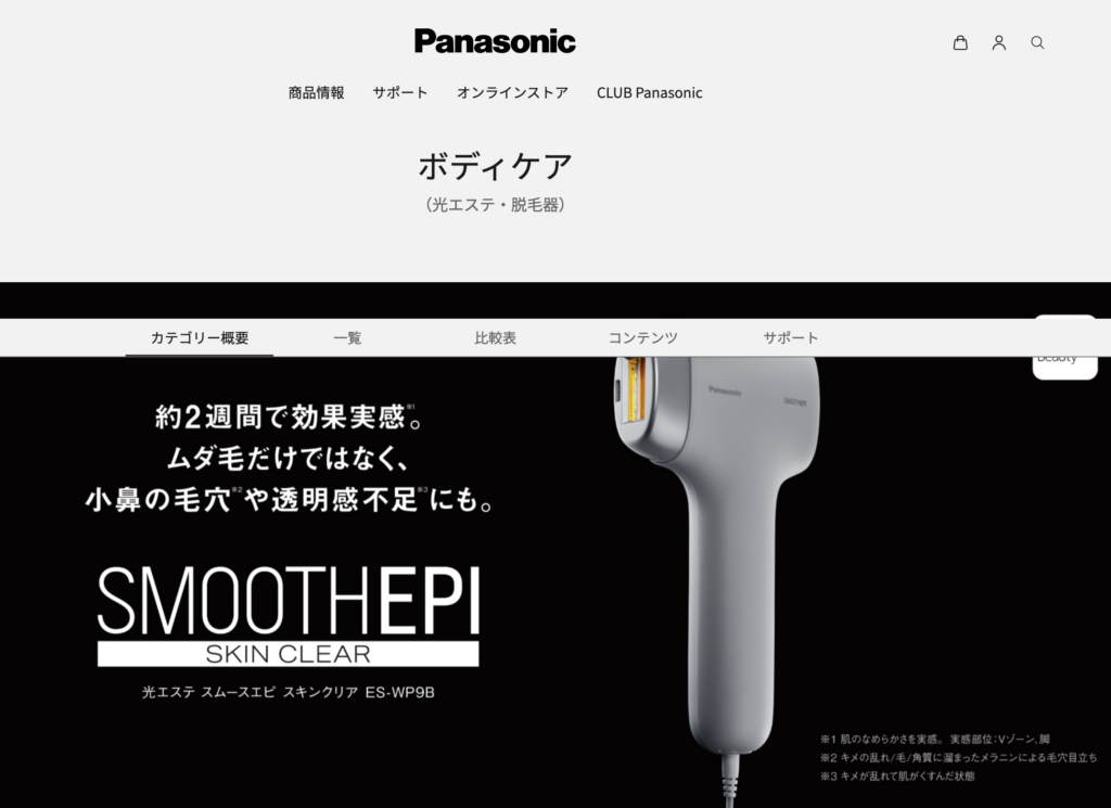 パナソニックの光美容器「光エステ」は、日本の大手家電メーカーが開発した家庭用光美容器で、使いやすさと安心感を重視した設計が特徴のモデルです。家庭用脱毛器を初めて使う人でも扱いやすい設計になっており、男性の体毛ケアにも対応しています。